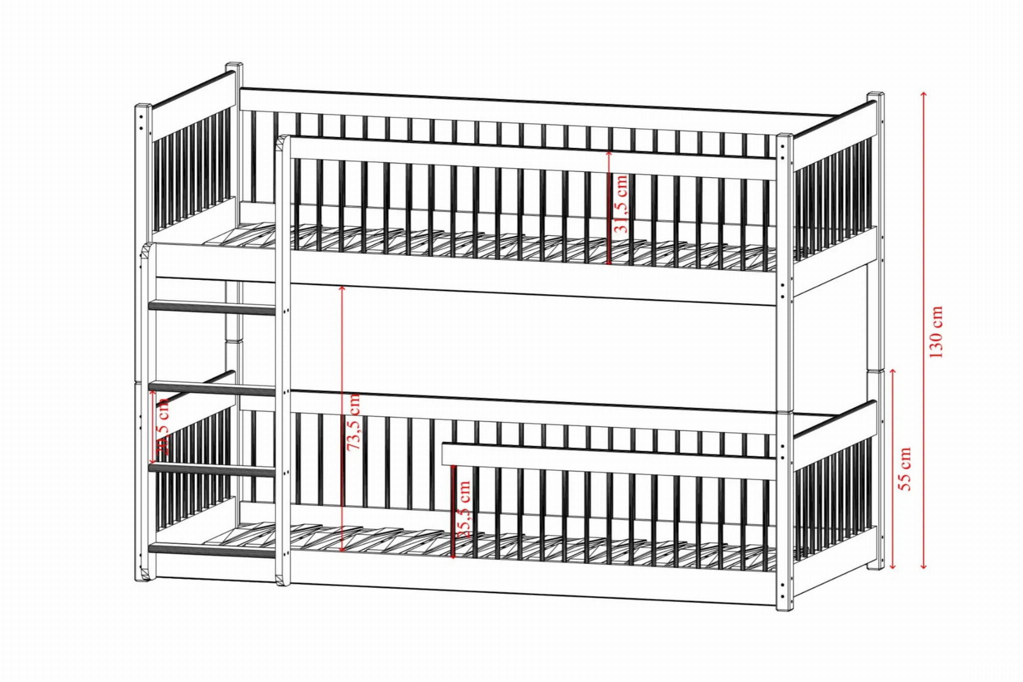 Das Etagenbett CHARM ist die ideale Lösung für Geschwisterzimmer oder kleine Kinderzimmer. Es bietet zwei bequeme Schlafplätze, überzeugt durch sein sicheres Design und passt sich perfekt jeder Einrichtung an – in sanften, modernen Farben.