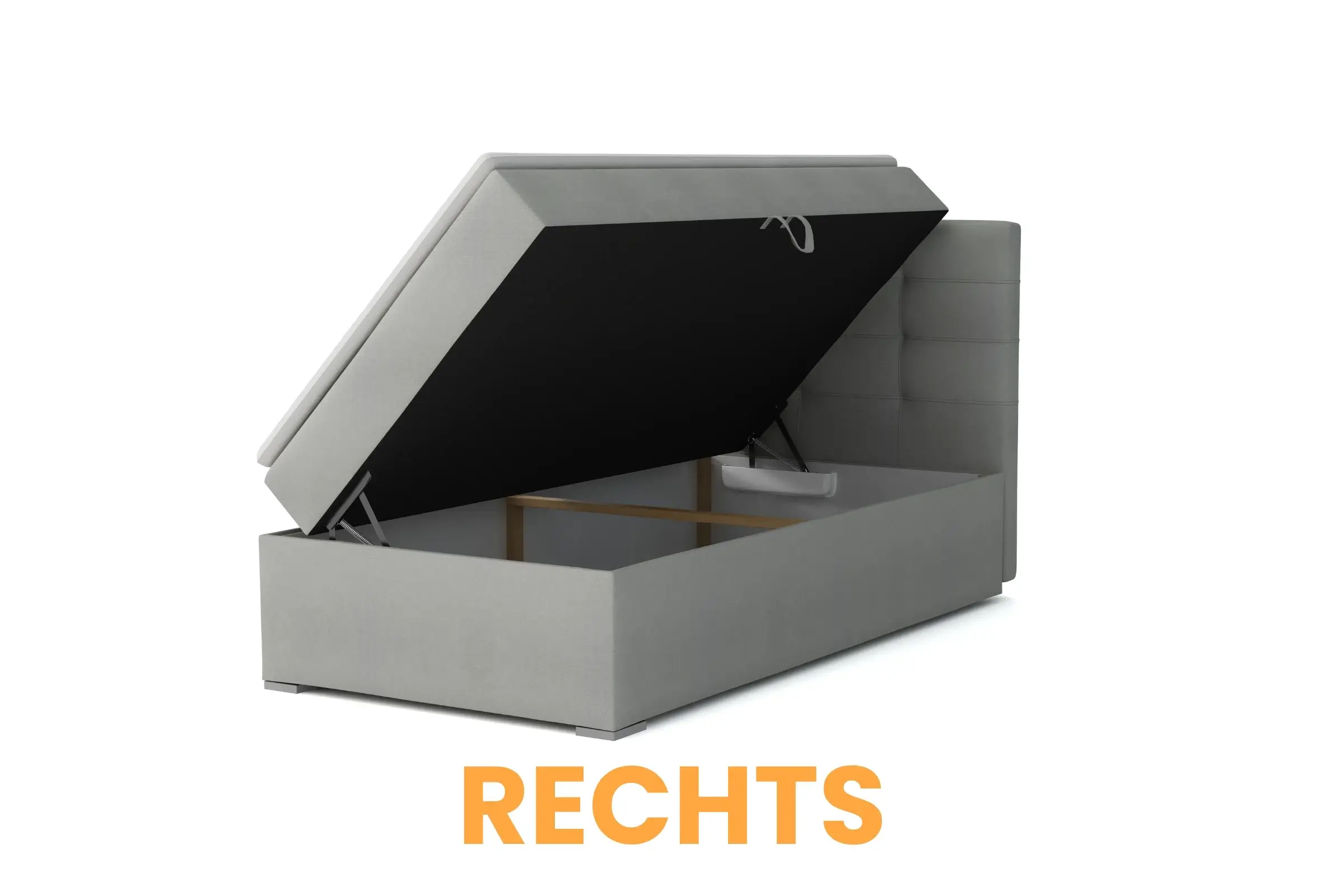 - Stauraum durch seitlich aufklappbaren Bettkasten