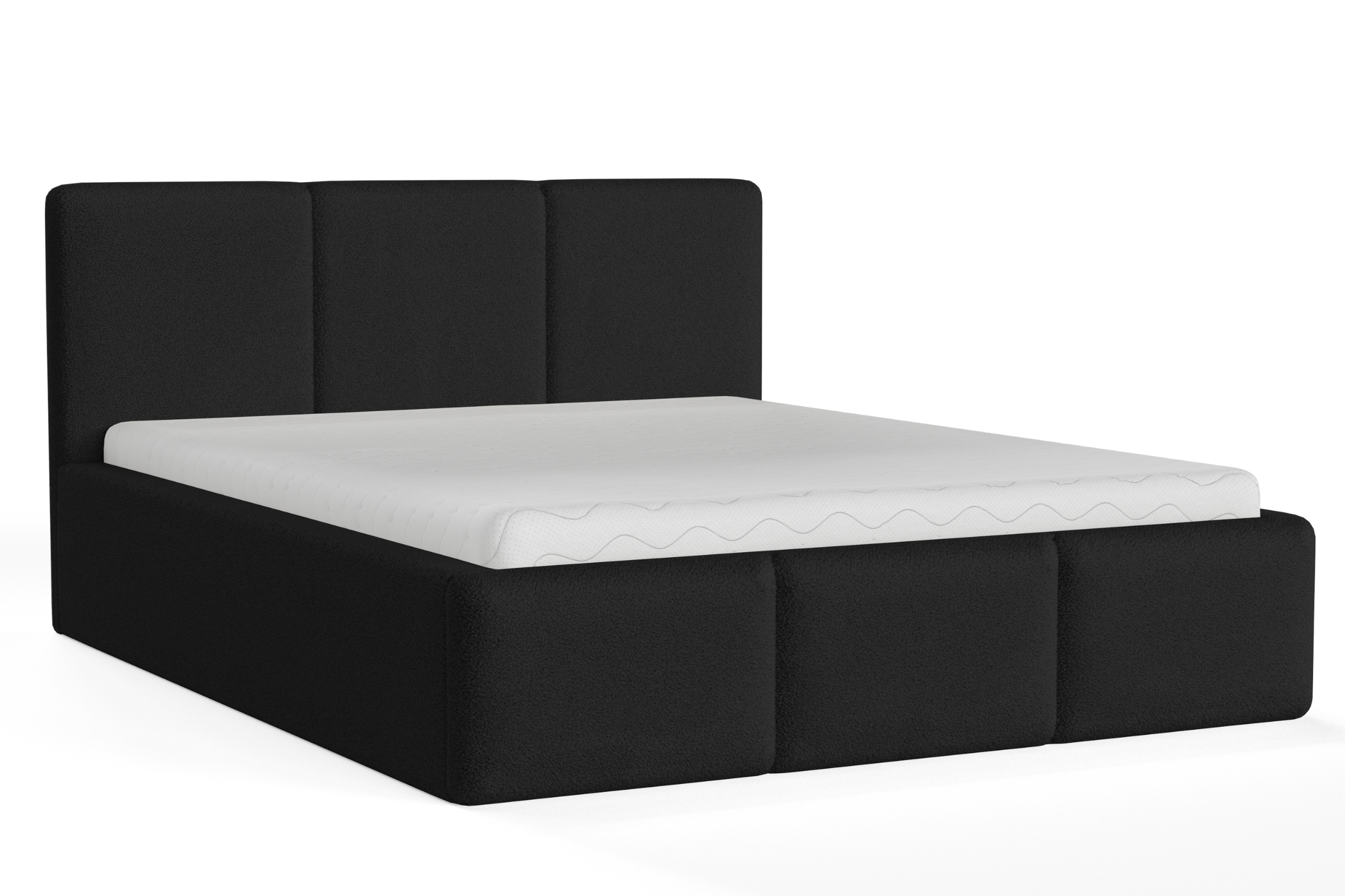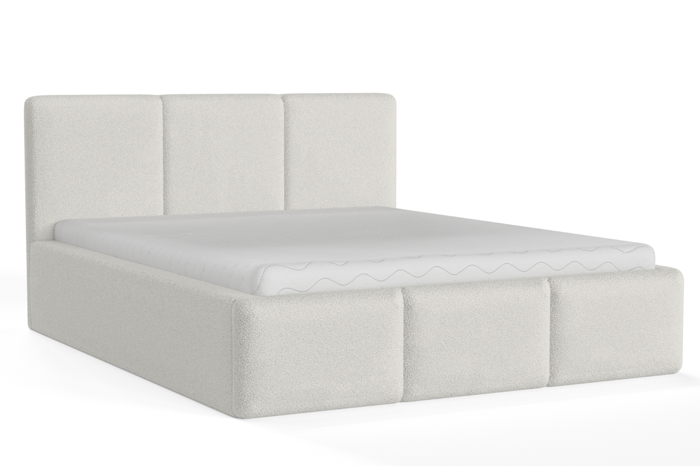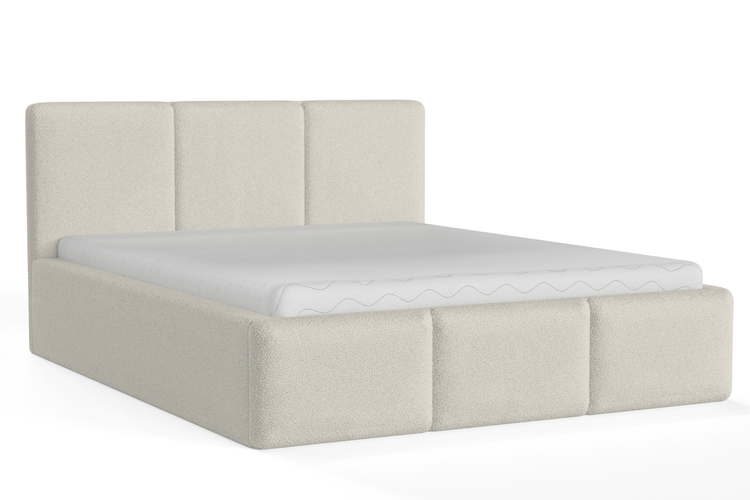 Das hohe, weich gepolsterte Kopfteil bietet angenehmen Halt beim Lesen oder Entspannen und verleiht dem Bett eine einladende, elegante Optik. Je nach Auswahl ist das Bett in modernen, pflegeleichten Stoffen wie strukturiertem Stoff erhältlich. Die Stoffe sind angenehm im Griff und setzen stilvolle Akzente im Raum.