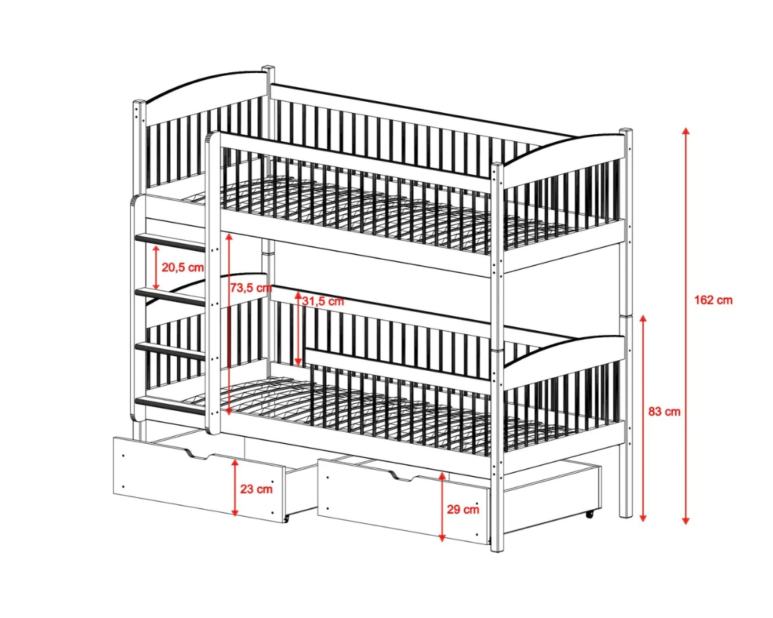 Ein Kinderzimmer soll ein Ort zum Träumen, Spielen und Wachsen sein. Das Etagenbett LUNEA bietet genau das – zwei gemütliche Schlafplätze in einem modernen, kindersicheren Design. Ideal für Geschwister oder kleine Übernachtungsgäste!