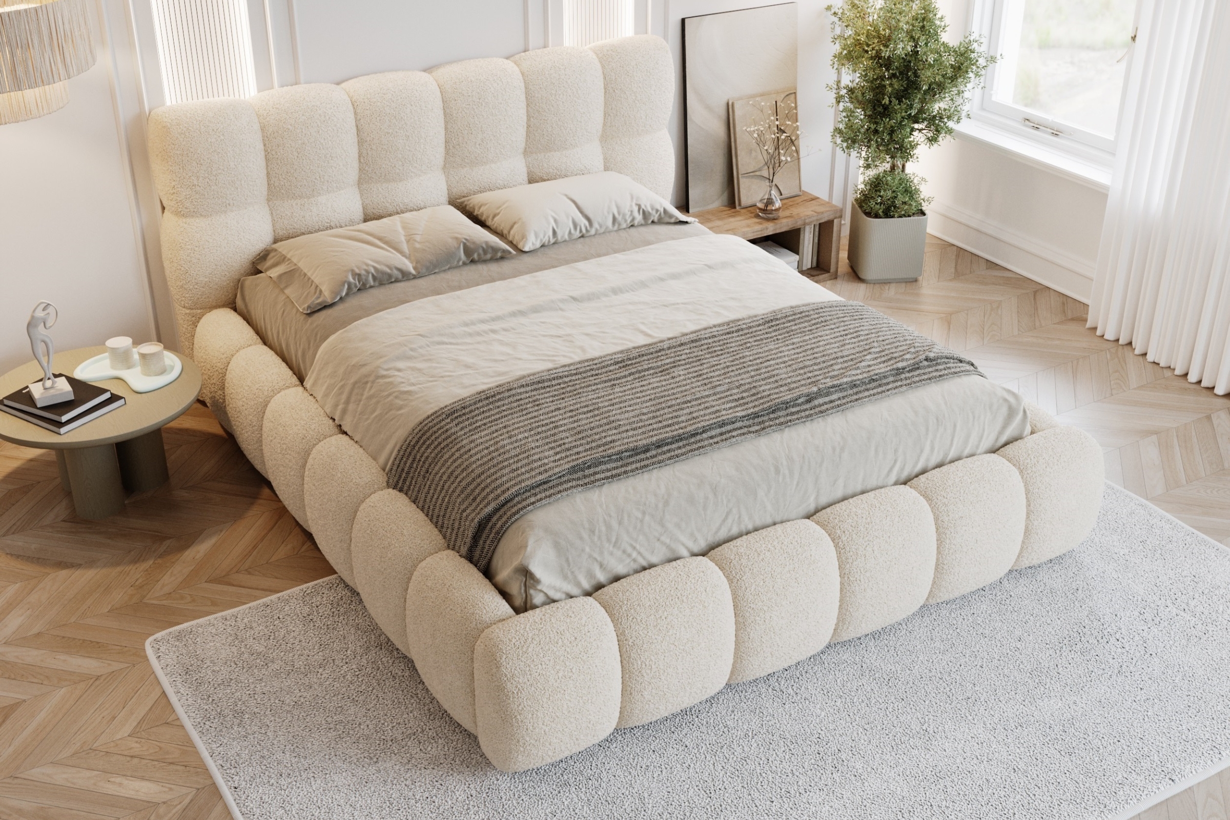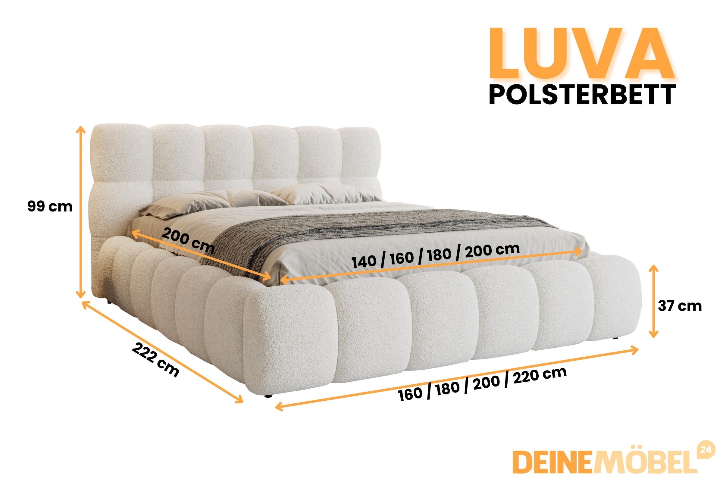 Träumen Sie stilvoll mit dem Polsterbett Luva – einem Bett, das durch seine sanften Rundungen, voluminöse Form und weichen Stoff sofort Gemütlichkeit ausstrahlt. Perfekt für alle, die modernes Design und maximalen Komfort lieben. Jetzt entdecken und Ihr Schlafzimmer auf ein neues Level bringen!