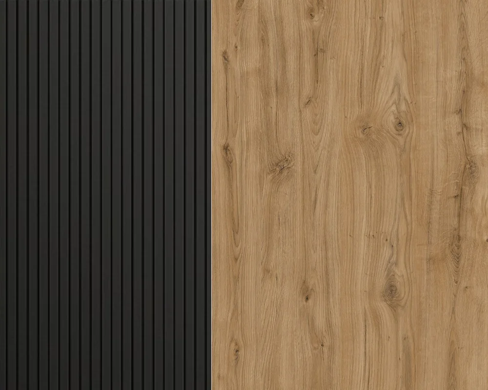 Möbel MEDIOLAN sind reizvolle Kombination aus geometrischen Formen und dezenten Farben. Geriffelte Fronten verleihen Finesse und Eleganz. Metallfüße unterstreichen das einzigartige Design der Möbel.