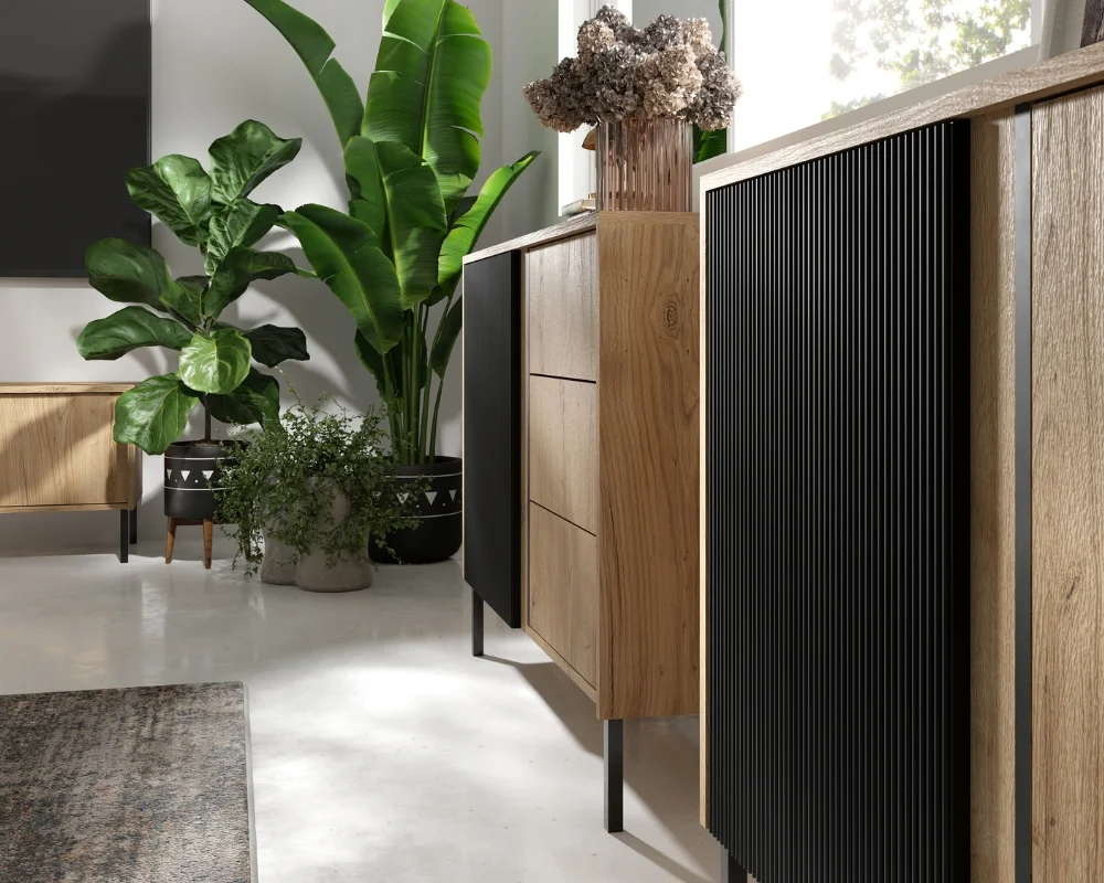 MEDIOLAN 7 TV-Low-Board mit geriffelten Fronten von Deine Möbel mit dekorativer Riffelung an den Fronten. Ein Möbel, das sich auf den Loft-Stil bezieht.