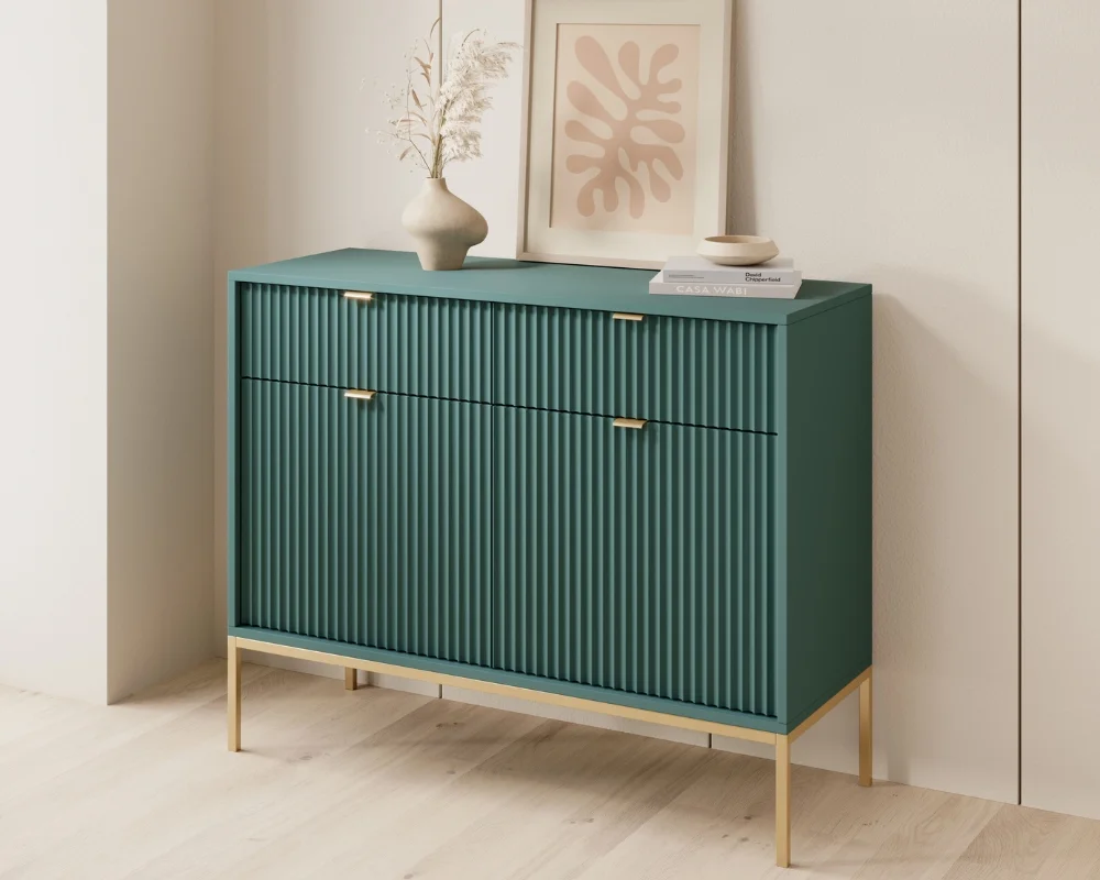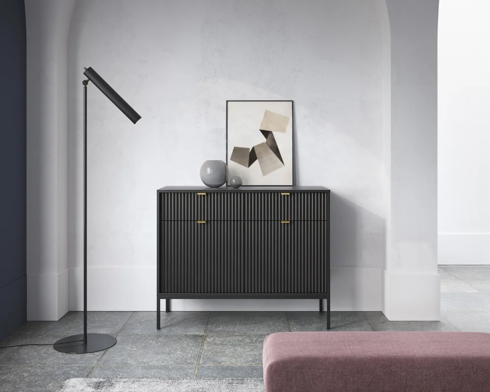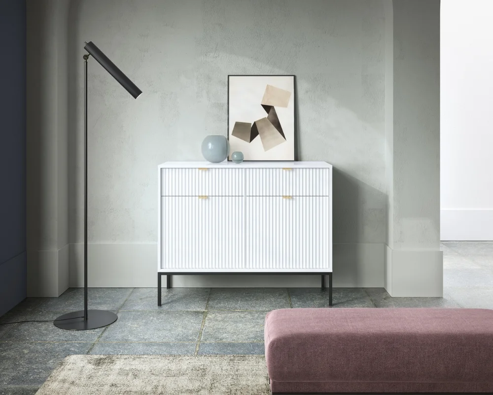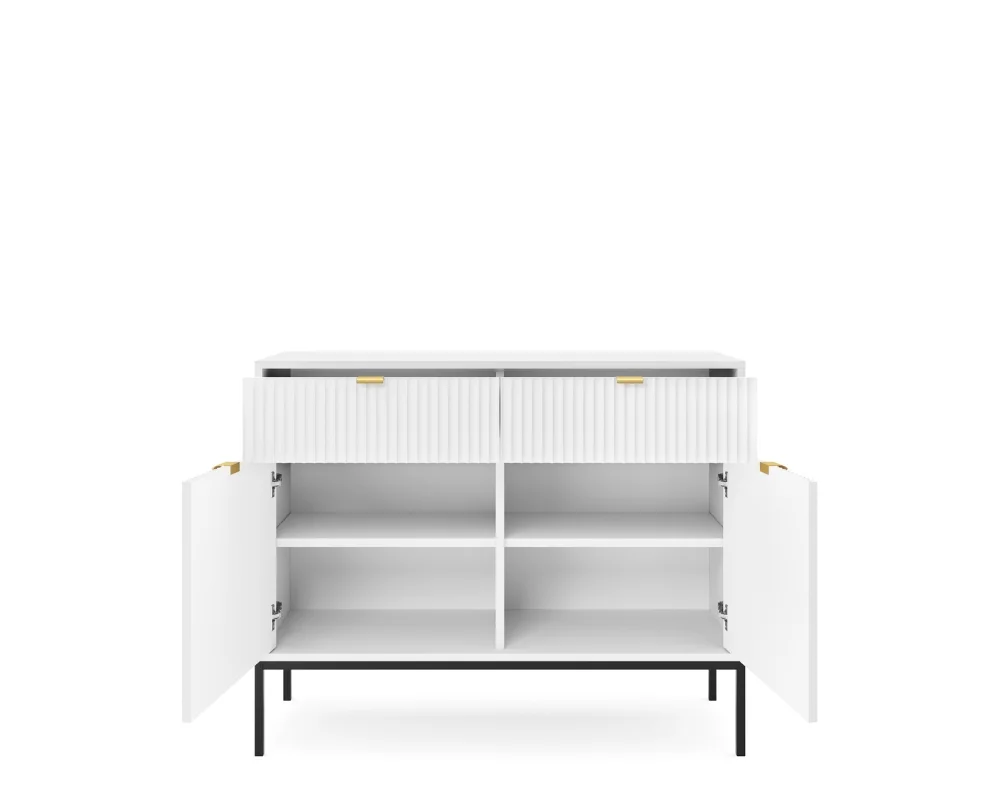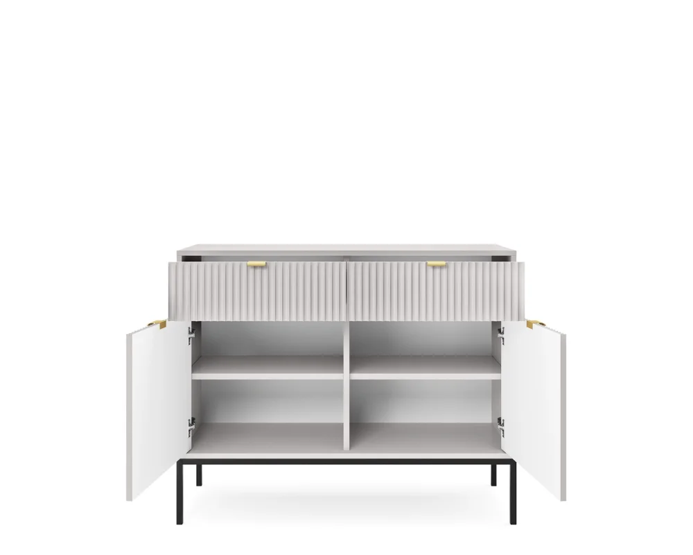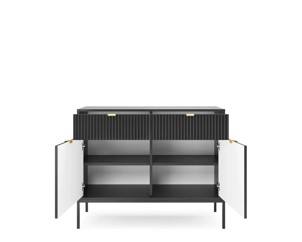 Die originelle und elegante Möbelkollektion NOVO ist die ideale Lösung für moderne Innenräume, die Funktionalität mit Ästhetik verbindet. Entwickelt, um praktischen Stauraum zu bieten, bietet sie Komfort und stilvolles Aussehen. Die Möbel der NOVO-Kollektion zeichnen sich durch trendige geriffelte Fronten sowie Beständigkeit gegen Staub und Sonnenstrahlen aus, wodurch sie ihr ursprüngliches Aussehen länger bewahren.