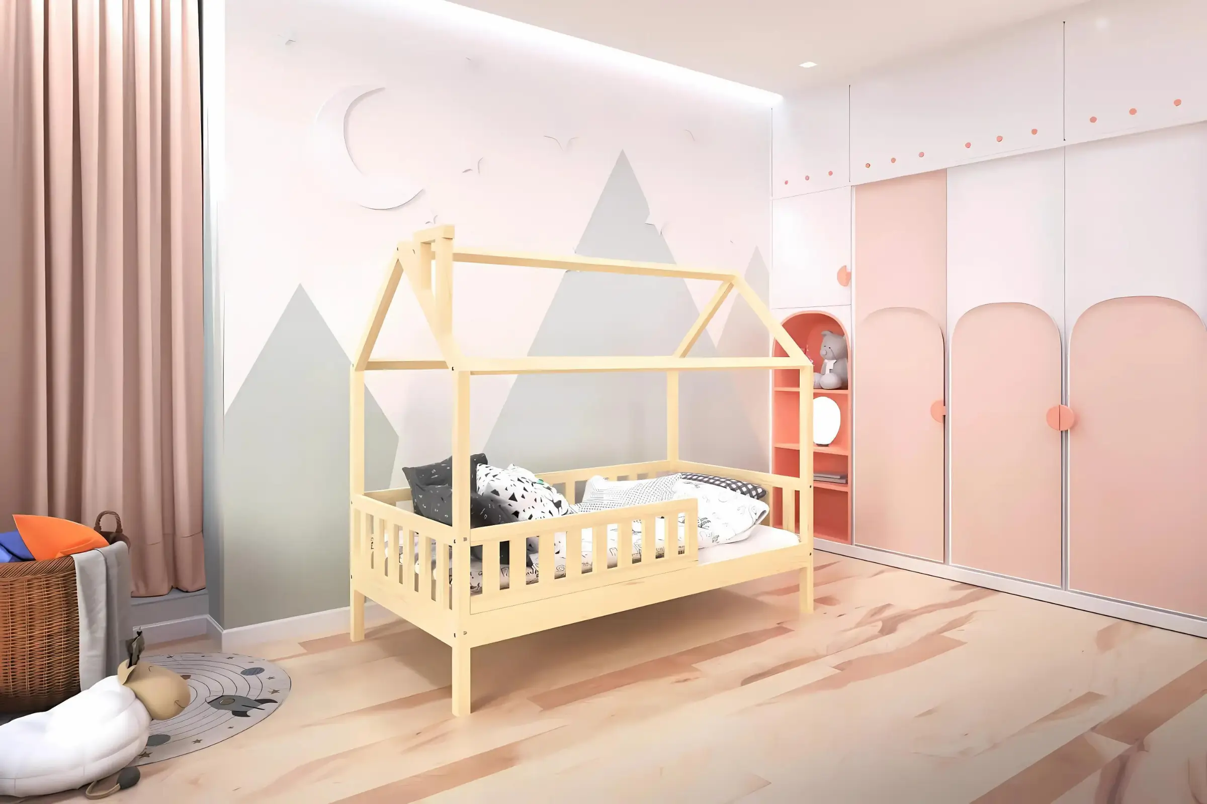 Das ROSI Bett wird aus nur hochqualitativen Materialien europäischer Herkunft hergestellt. Das moderne Hausbett im skandinavischen Still schafft ein tolles Wohnambiente in jedem Kinderzimmer. Dank den stabilen Pfosten ist die Bettkonstruktion stabil. Das Hausbett wurde aus massivem Kiefernholz angefertigt und besticht durch seine sichtbare Holzstruktur und Wärme des Materials.