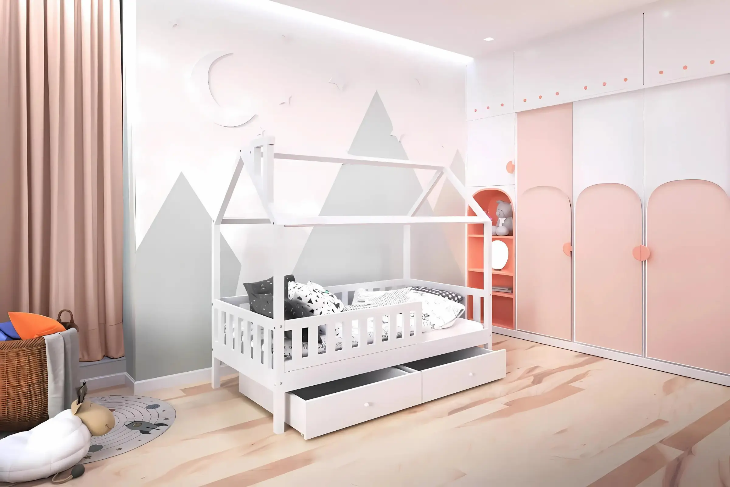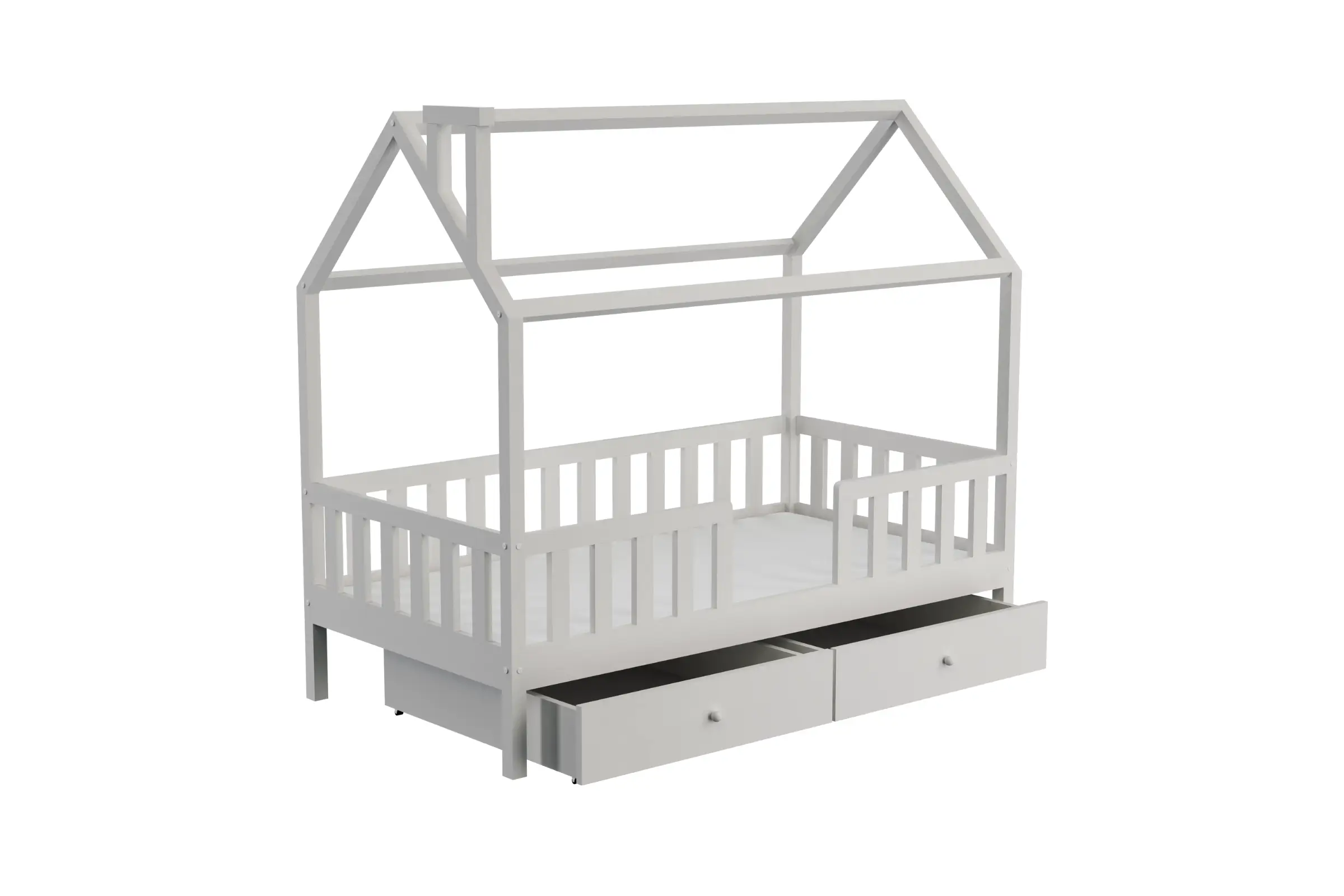 Das ROSI Bett wird aus nur hochqualitativen Materialien europäischer Herkunft hergestellt. Das moderne Hausbett im skandinavischen Still schafft ein tolles Wohnambiente in jedem Kinderzimmer. Dank den stabilen Pfosten ist die Bettkonstruktion stabil. Das Hausbett wurde aus massivem Kiefernholz angefertigt und besticht durch seine sichtbare Holzstruktur und Wärme des Materials.