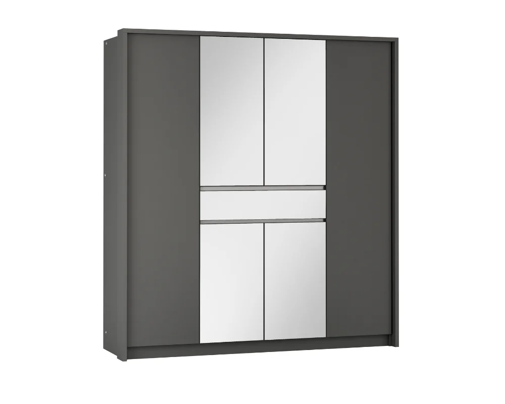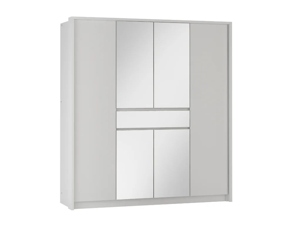 Der Kleiderschrank SIMI  bietet viel Stauraum und vereint Funktionalität mit Ästhetik. Im Inneren befinden sich Regale, Kleiderstangen und vier Schubladen für geordnete Aufbewahrung.
