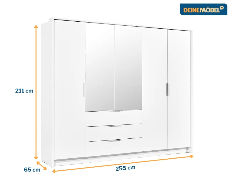 TORRANCE 255 Kleiderschrank mit Schubladen und Spiegel Deine Möbel 24