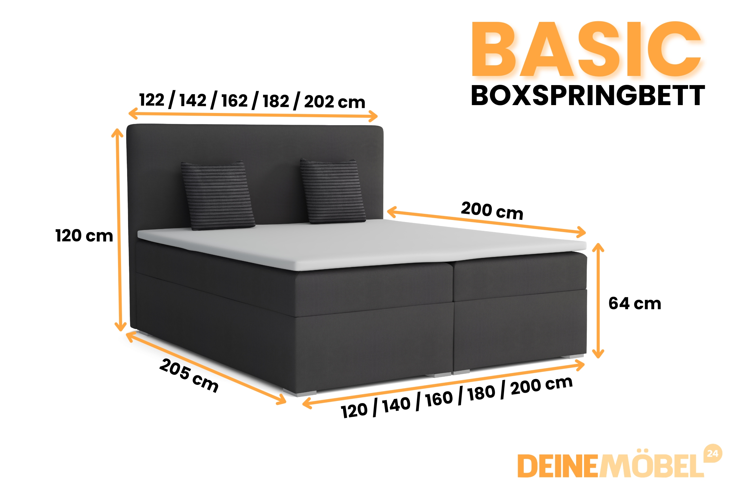 - 180 x 200 cm: Außenmaß: 182x205x120 cm