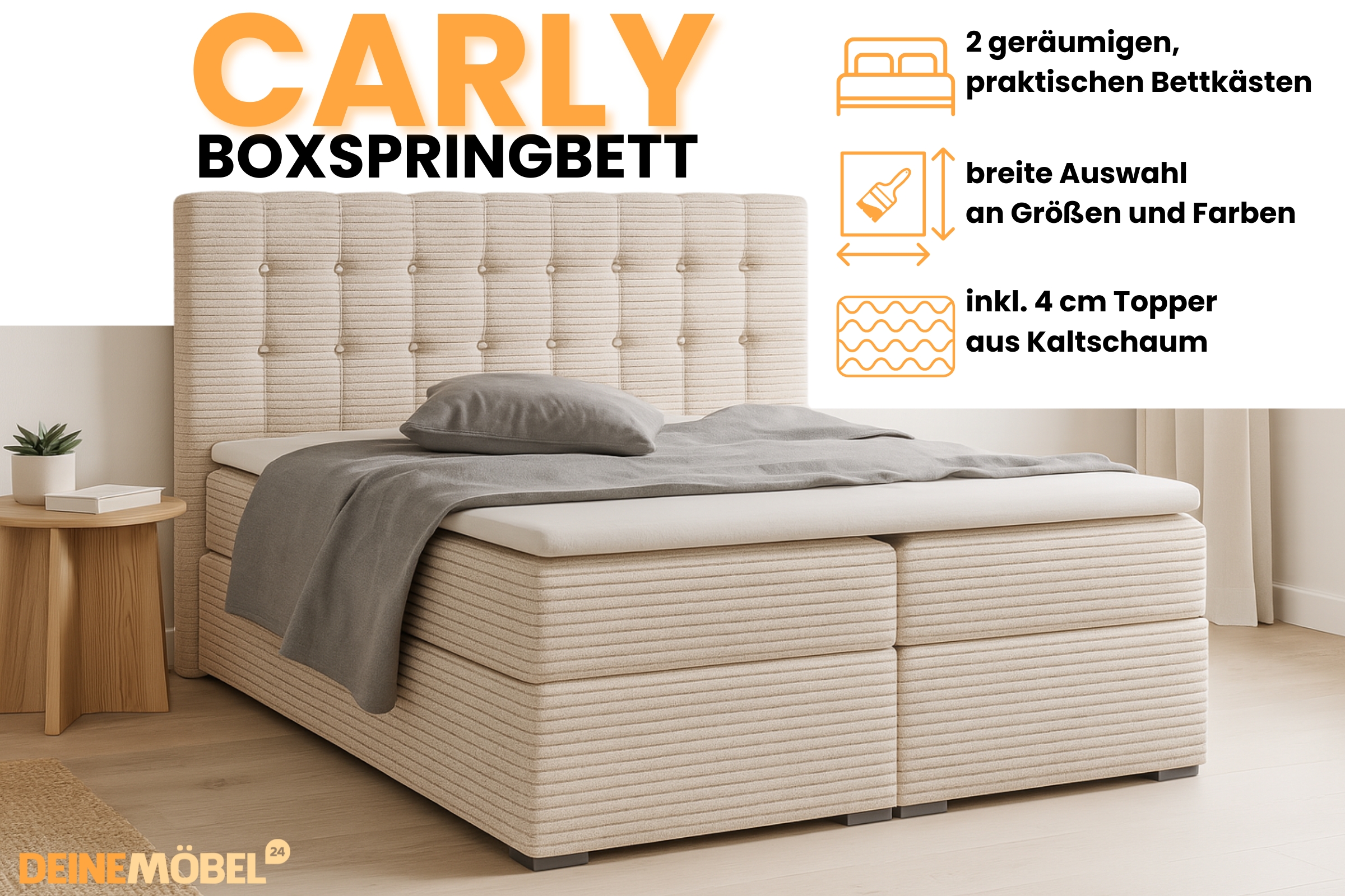 CARLY – Boxspringbett mit Stauraum, Komfort und stilvollem Cord-Design