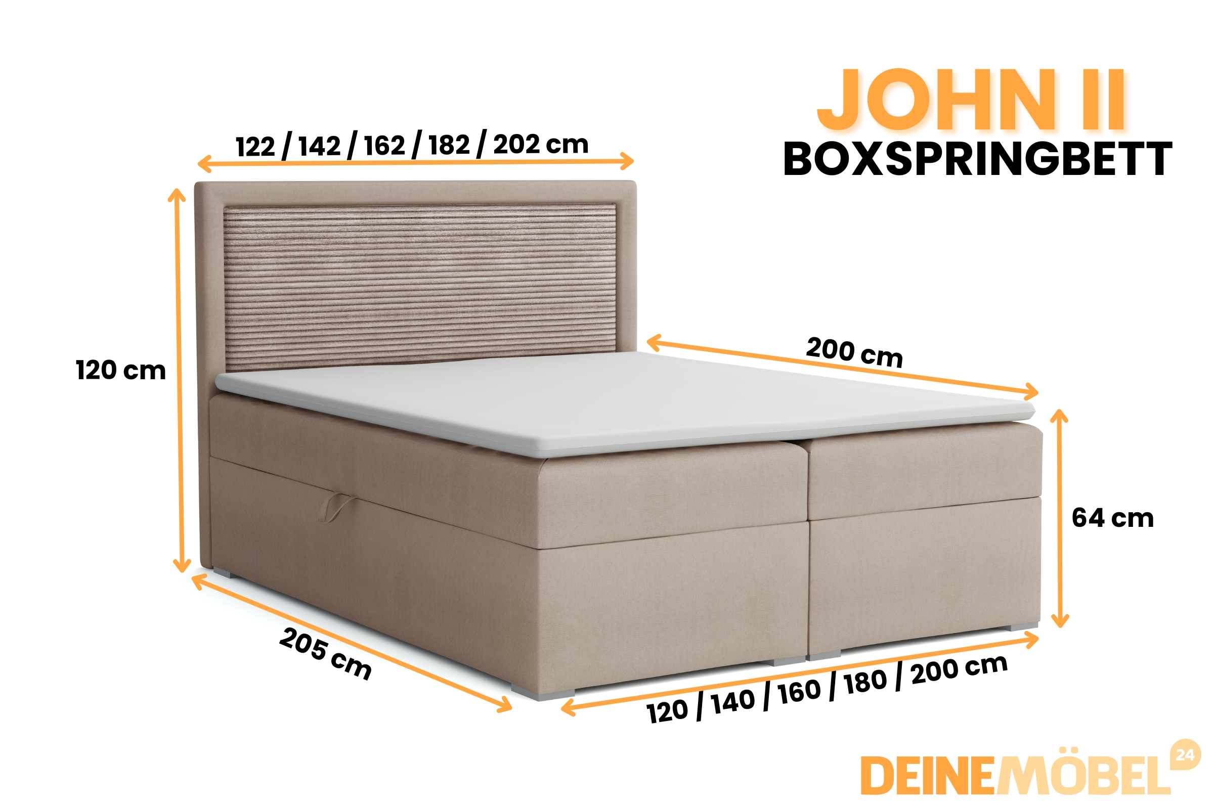 Bitte beachten Sie, dass jedes Boxspringbett eine Sonderfertigung ist.