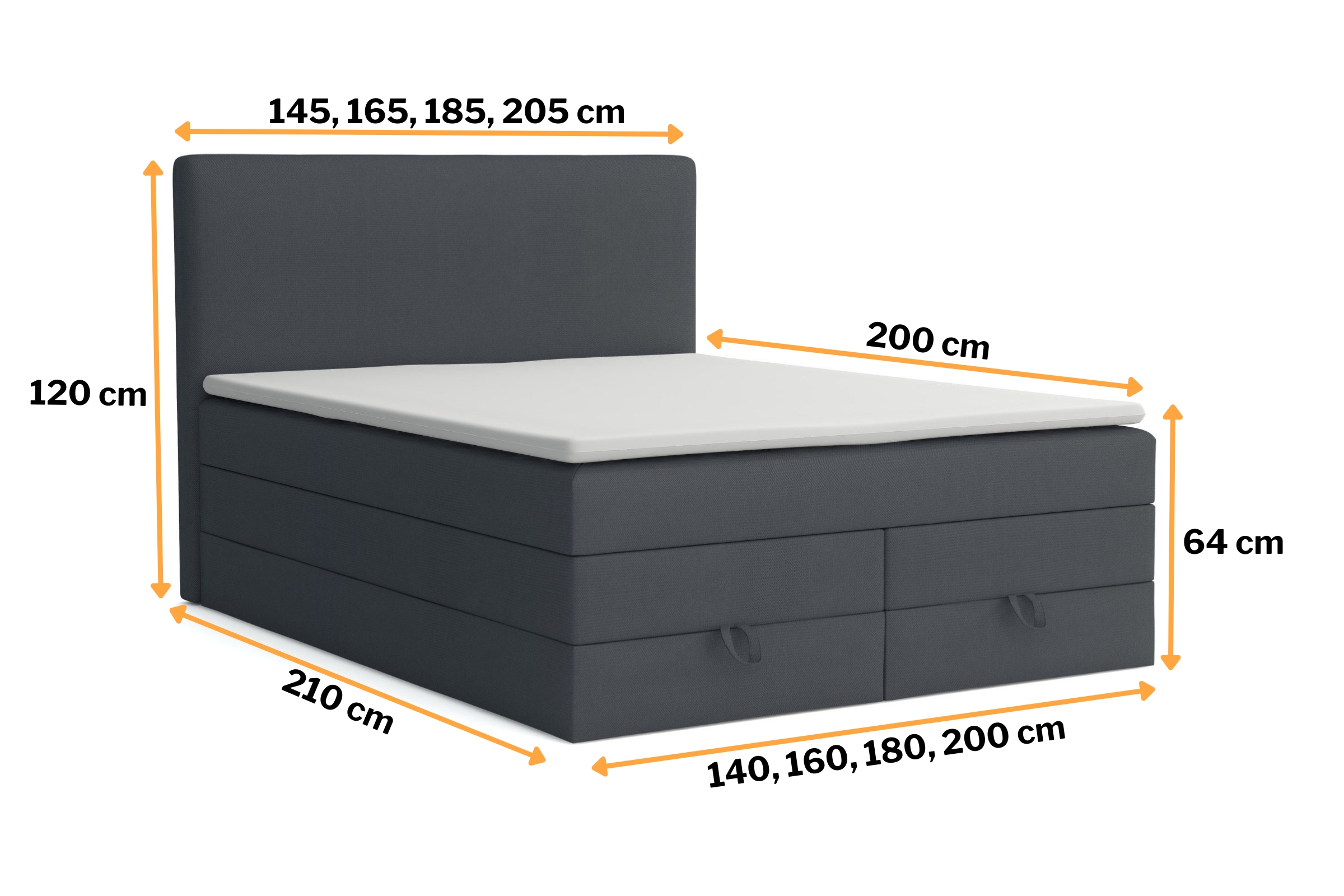 Das Boxspringbett BASIC DUO ist ein herausragendes Modell mit einem markanten Design, das die klassische Eleganz mit den neuesten Trends vereint. Dieses stilvolle Bett verleiht Ihrem Schlafzimmer eine Mischung aus Eleganz und Modernität. Die Polsterung aus strapazierfähigem Velour Kronos / Paros bietet ein äußerst angenehmes Liegegefühl und lässt sich nahtlos in verschiedene Einrichtungsstile integrieren. Dank seiner soliden Konstruktion wird dieses Bett Ihnen lange Freude bereiten. Das hohe Kopfteil und das gepolsterte Gestell verleihen ihm einen besonderen Charme und machen es zu einem Blickfang in jedem modernen Schlafzimmer. Die seitlich klappbaren Bettkästen bieten zusätzlichen Stauraum und sorgen für Ordnung im Raum, während sie gleichzeitig die überquellenden Schränke entlasten. Mit zwei Bonell-Federkernmatratzen (H3) unten und einer Taschenfederkernmatratze (H4) oben bietet dasBoxspringbett BASIC DUO ultimativen Komfort für einen erholsamen Schlaf.