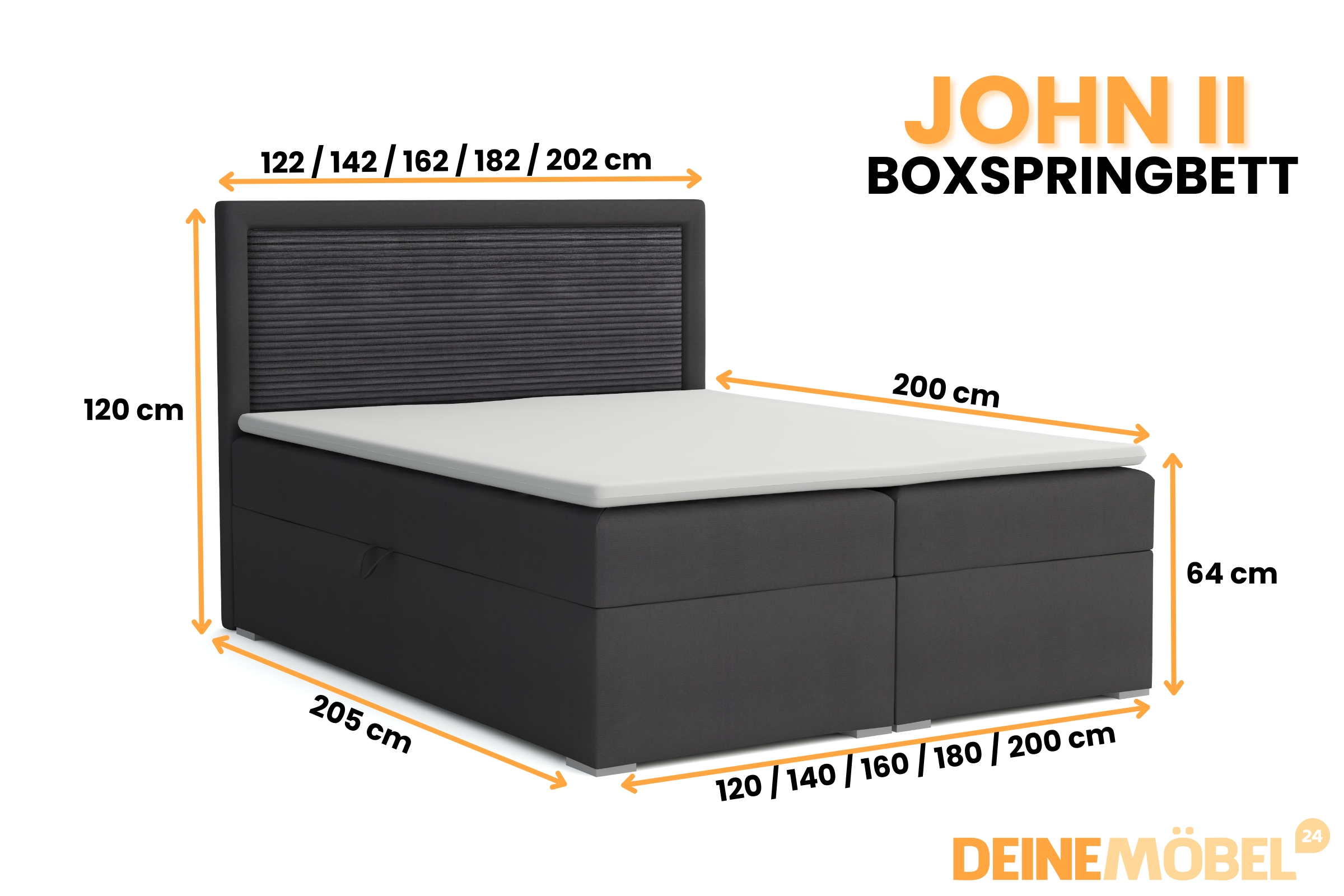 Das Boxspringbett JOHN II bietet die perfekte Kombination aus Komfort, Stauraum und modernem Design. Verwandeln Sie Ihr Schlafzimmer in eine stilvolle Wohlfühloase und genießen Sie himmlische Nächte!