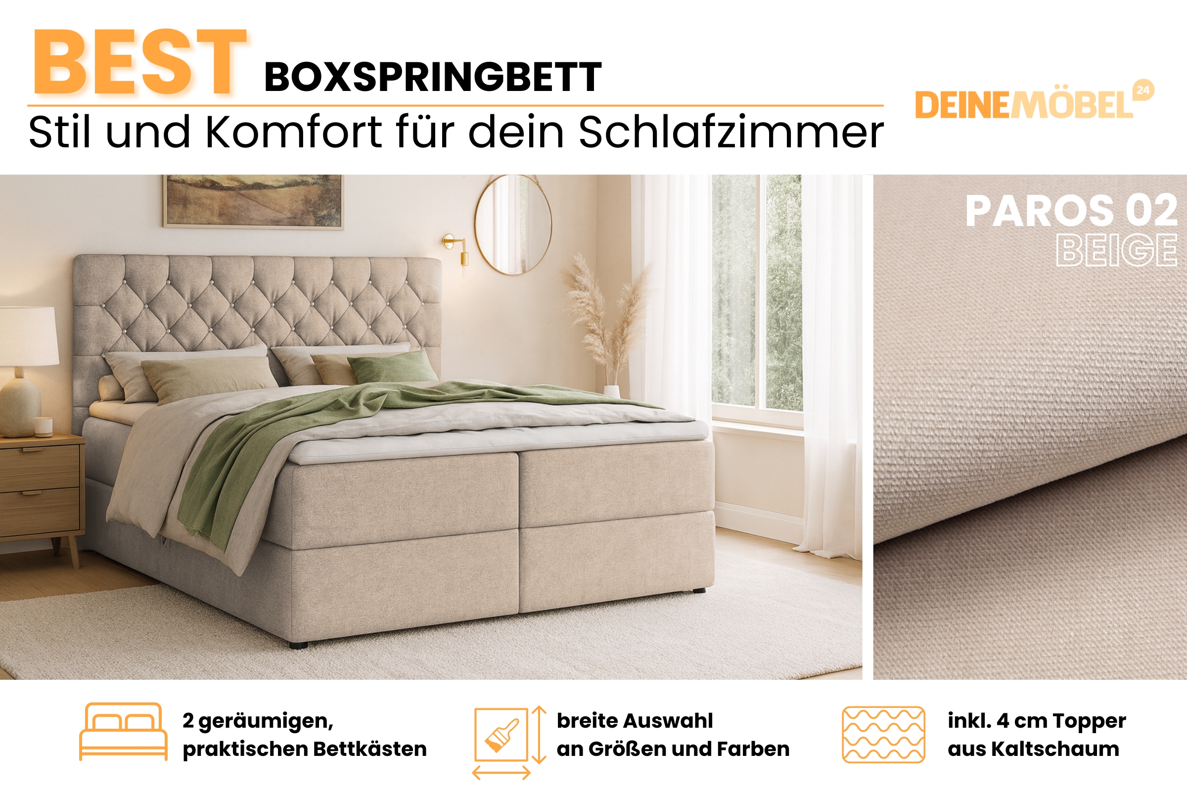BEST 180x200 Paros 2 Beige Boxspringbett mit Bettkasten Deine Möbel