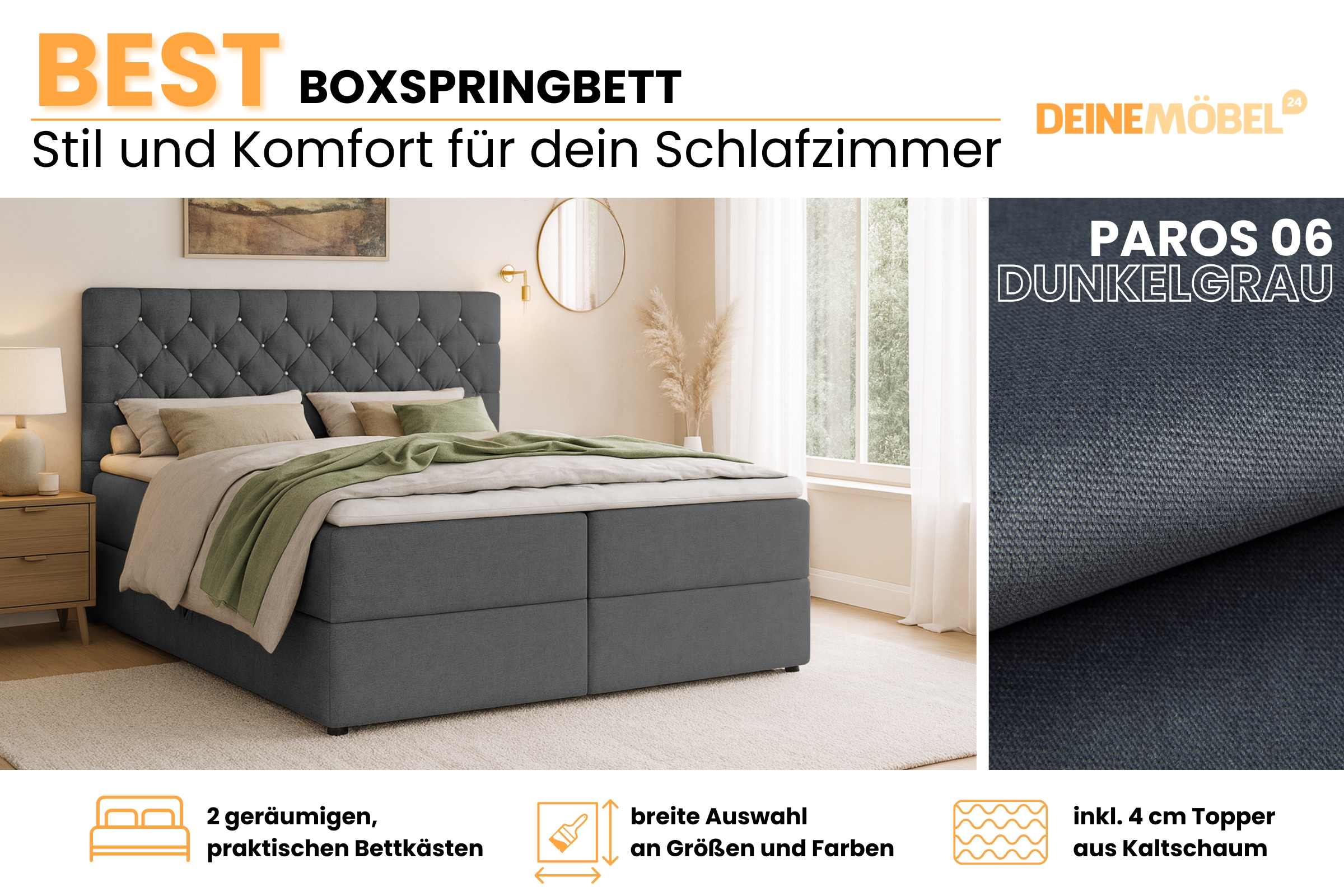 BEST 180x200 Paros 6 Dunkelgrau Boxspringbett mit Bettkasten Deine Möbel