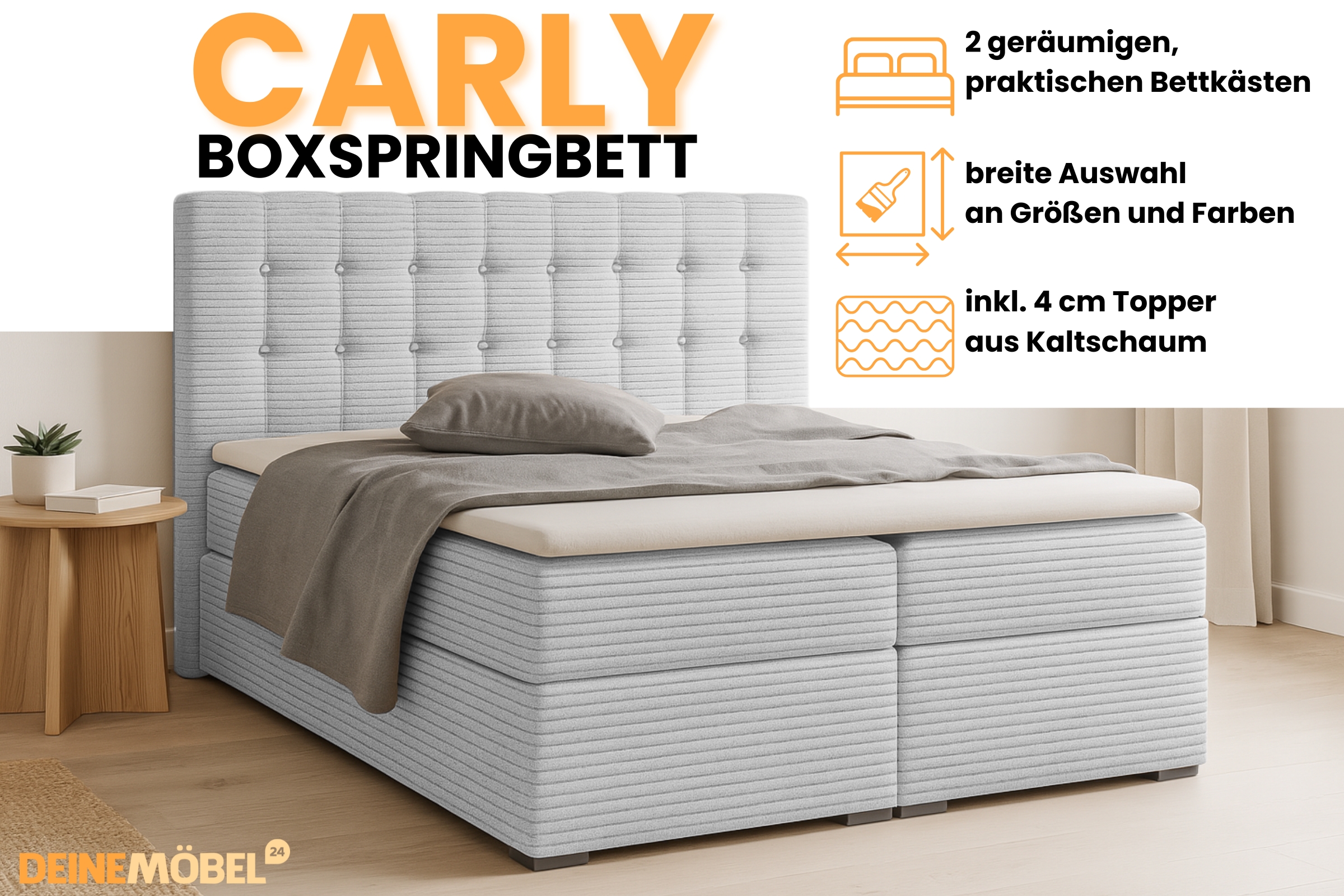 CARLY – Boxspringbett mit Stauraum, Komfort und stilvollem Cord-Design