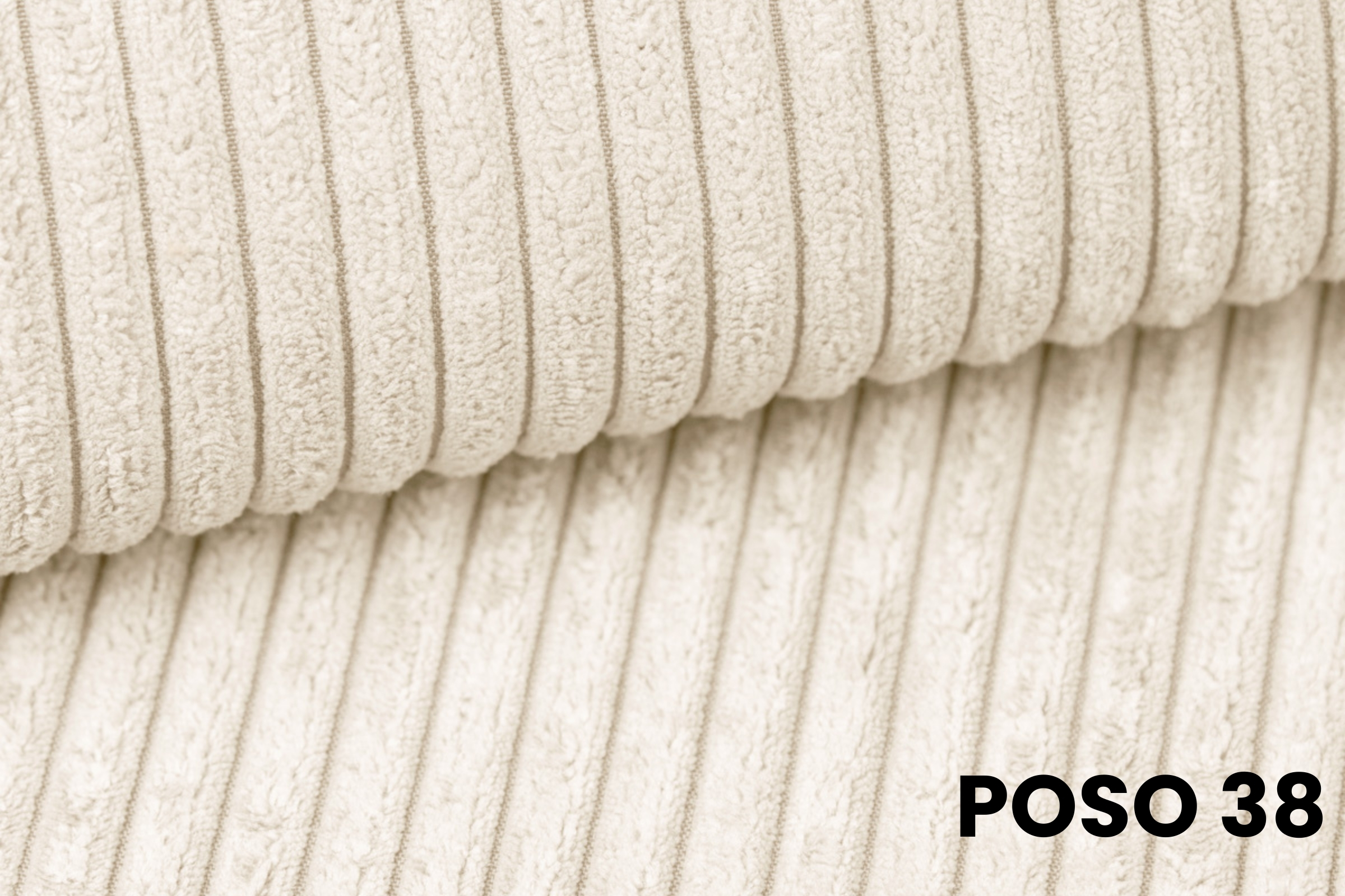 Cord-Stoff Poso: wird als Veloursstoff eingestuft. Es handelt sich um ein plüschiger Stoff mit kurzem Haar. Der Stoff zeichnet sich durch seine samtig feine Oberfläche. Stoff Poso ist aus 100 % Polyester mit höherem Gewicht 380 g/m2 hergestellt. Sein typischer Eindruck sieht als Cord-Stoff aus. Dieser Stoff zeichnet sich durch seine Festigkeit und Widerstandsfähigkeit aus. Wir empfehlen den Stoff mit einem feuchten Lappen und Seifenwasser oder mit speziellen Reinigungsmitteln für Polstermöbel zu reinigen.