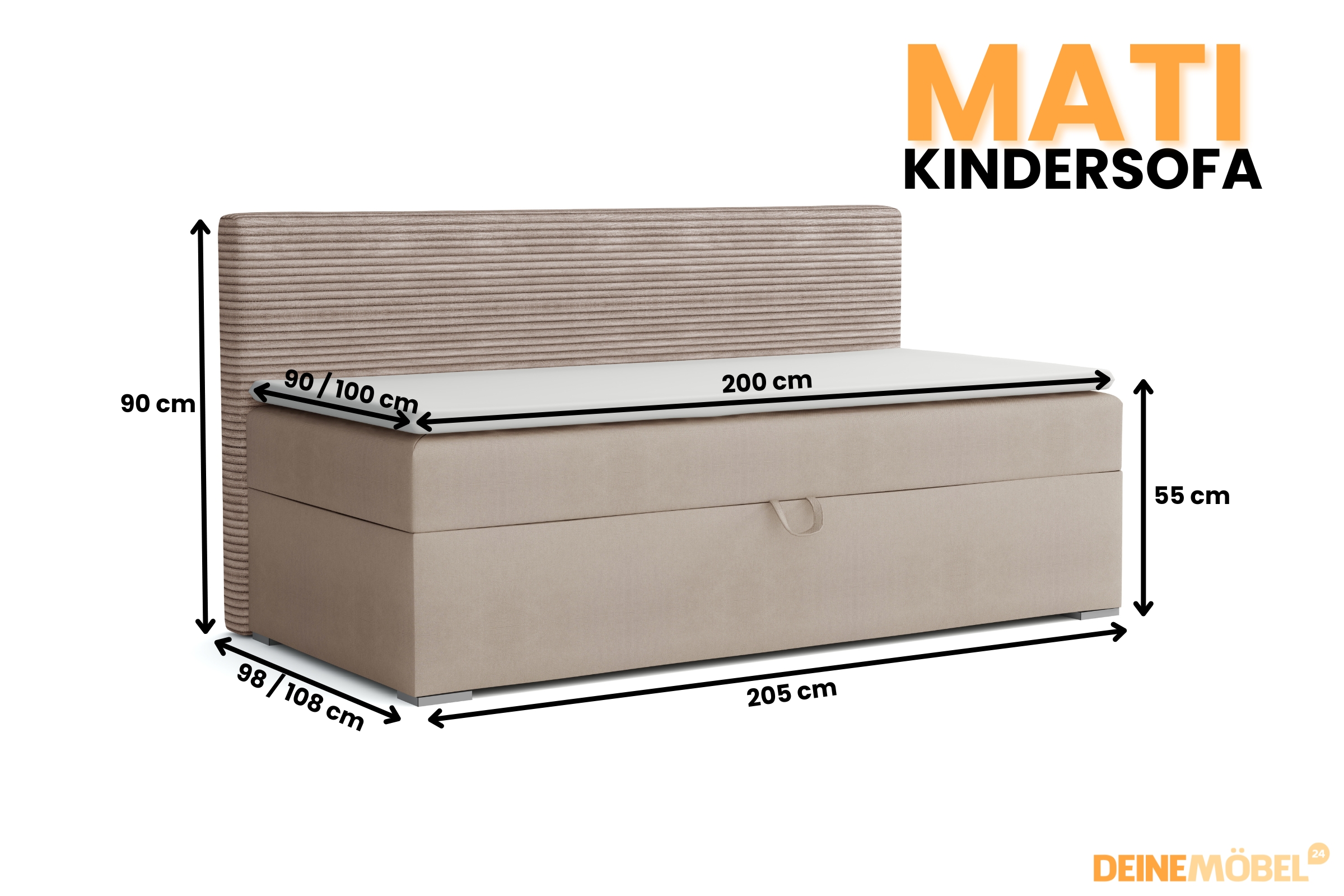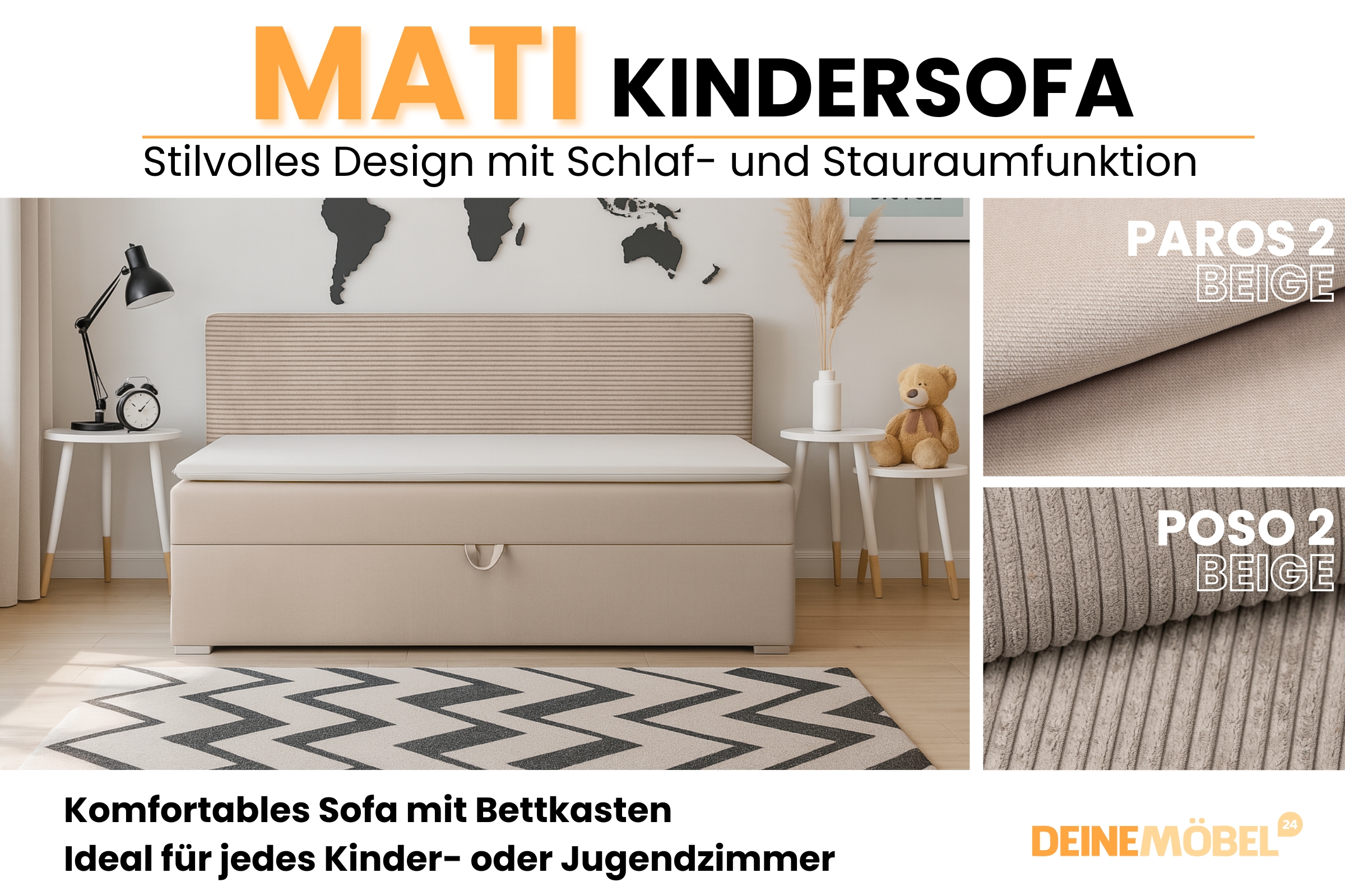 Boxspringbett Kindersofa MATI – Stilvolles Sofa mit Schlaffunktion und Bettkasten