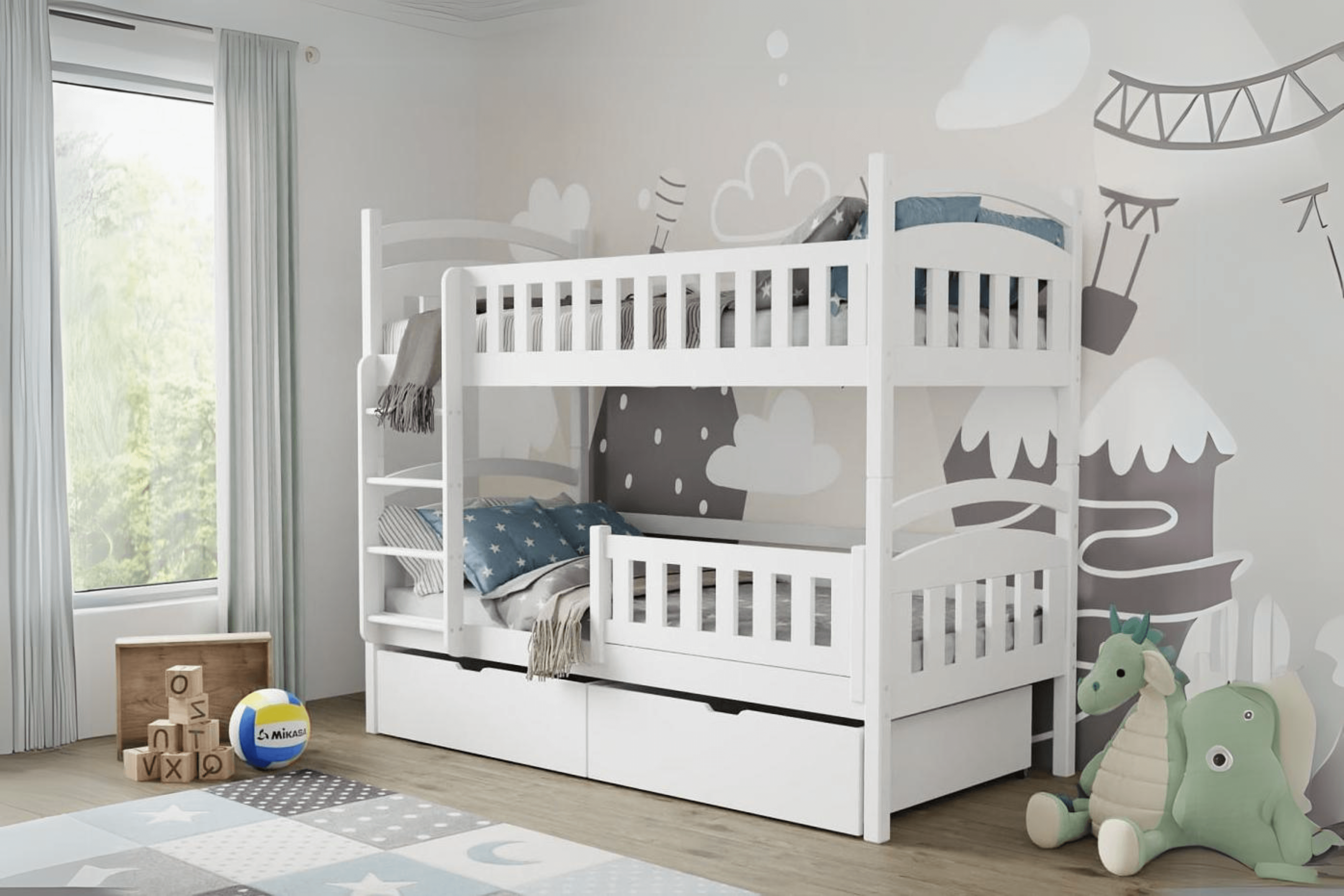 • Sicheres Finish: Das Bett ist mit Farben gemäß der Norm EN 71-3 beschichtet, was bedeutet, dass sie frei von Schadstoffen sind und somit absolut kindersicher.