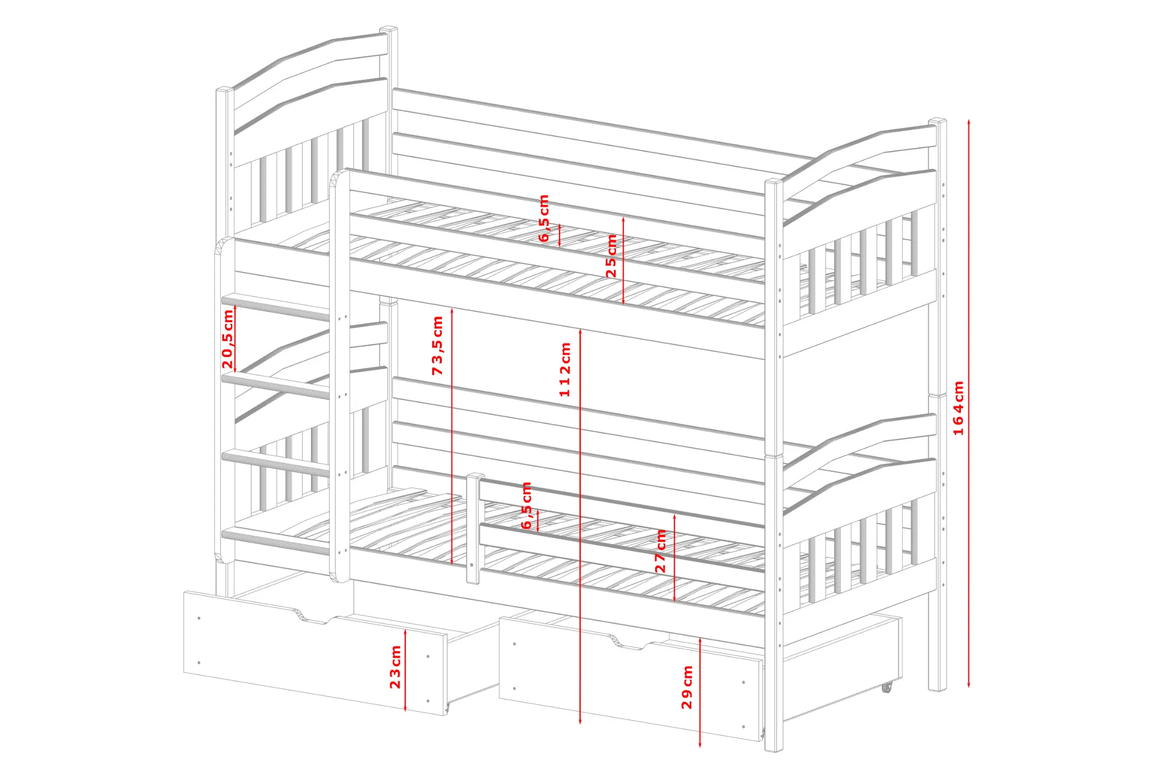 • Abstand vom Boden bis zur unteren Matratze: 29 cm
