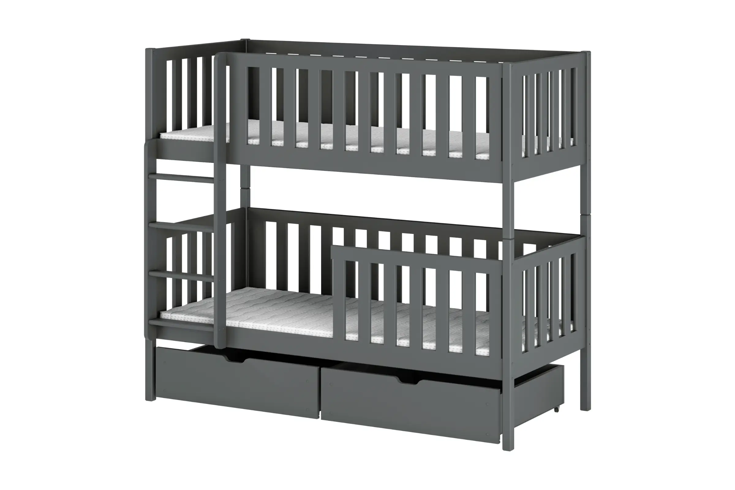 Das Etagenbett MANUEL 90x200 bietet eine sichere, robuste und platzsparende Lösung für Kinderzimmer. Mit seiner stabilen Kiefernholzkonstruktion, dem sicheren Rausfallschutz und den praktischen Schubladen bietet es sowohl Komfort als auch viel Stauraum. Durch die Möglichkeit, das Bett in zwei Einzelbetten zu teilen, ist es flexibel und langlebig.