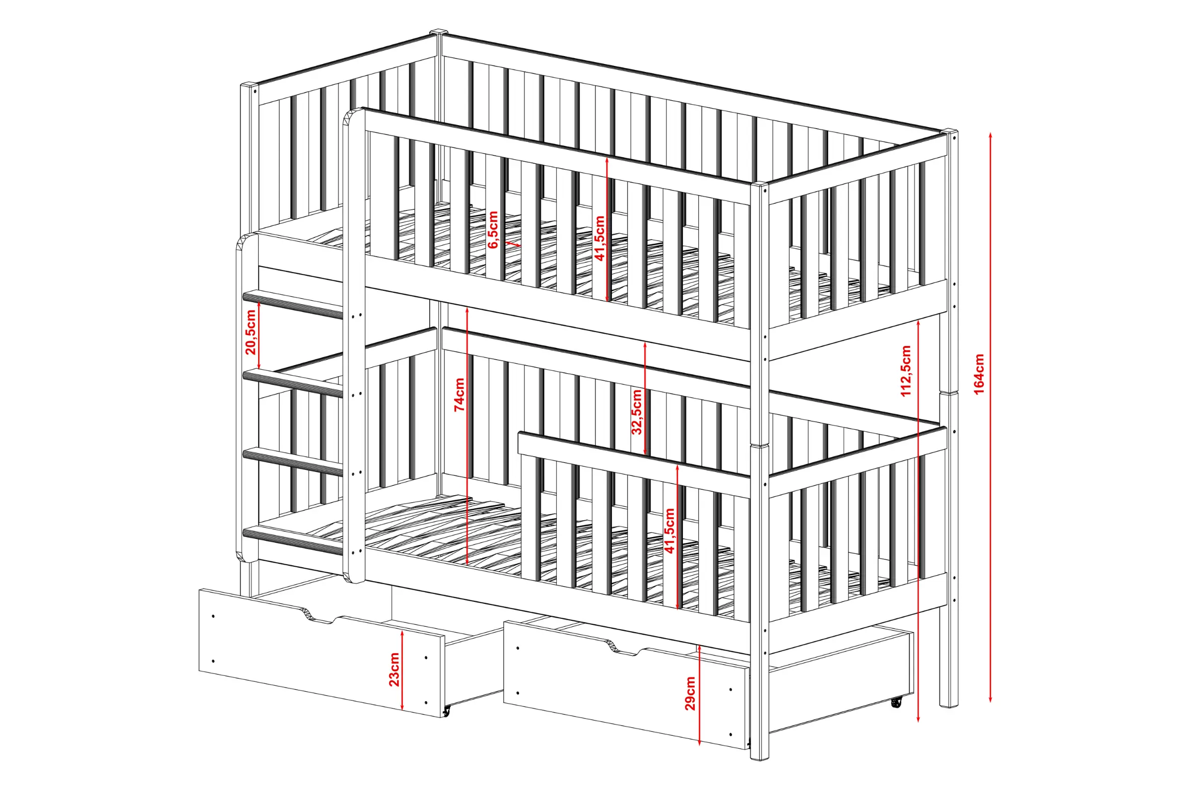 • Abstand vom Boden bis zur oberen Matratze: 112,5 cm