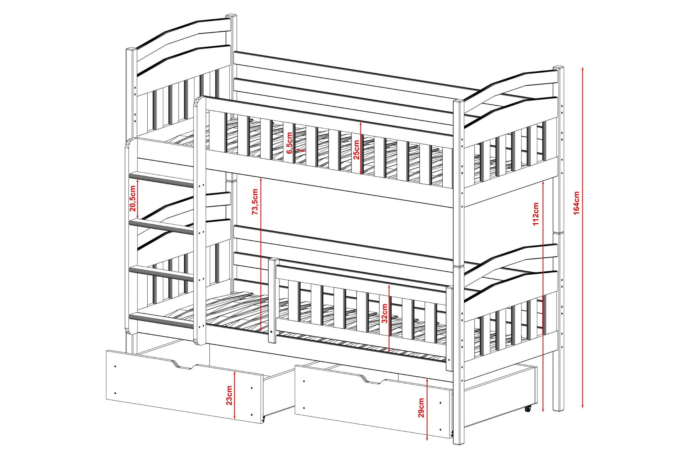 • Sicheres Finish: Das Bett ist mit Farben gemäß der Norm EN 71-3 beschichtet, was bedeutet, dass sie frei von Schadstoffen sind und somit absolut kindersicher.