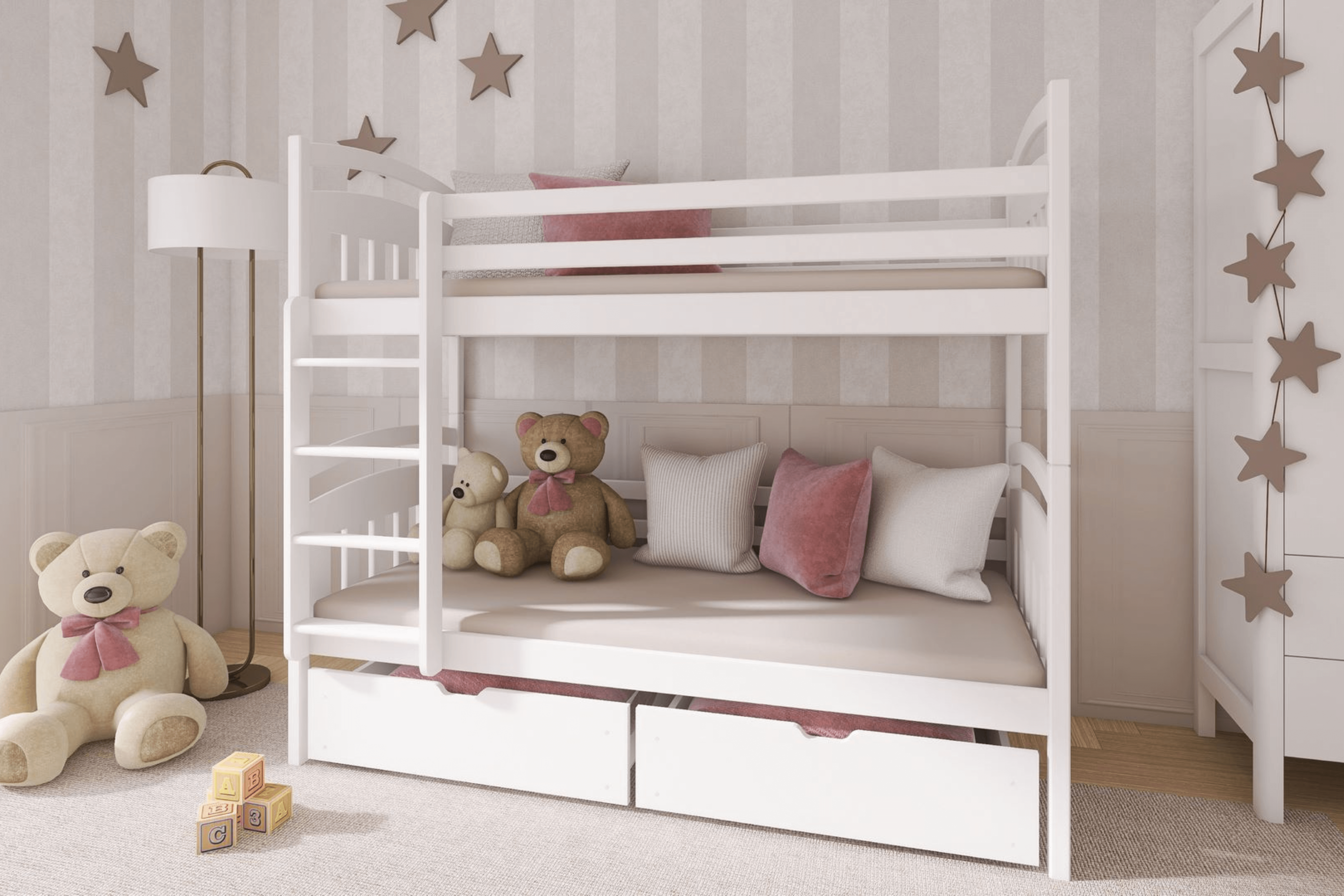 Etagenbett GABI für 2 Kinder – Inklusive Lattenrost, Leiter und Bettkasten