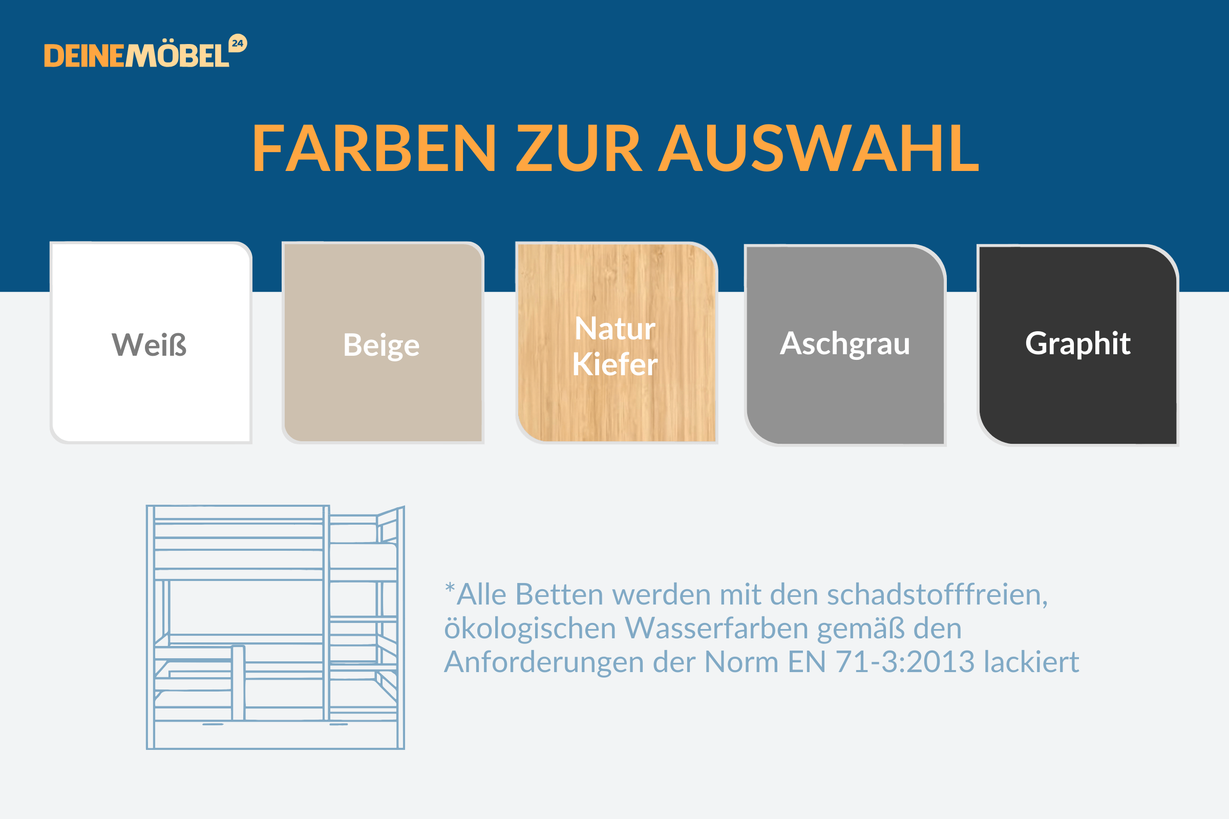 Hinweis: Matratzen sind nicht im Grundpreis enthalten, können jedoch separat erworben werden. Weitere Informationen zu Matratzen finden Sie in der Kategorie „Matratzen für Kinder“.