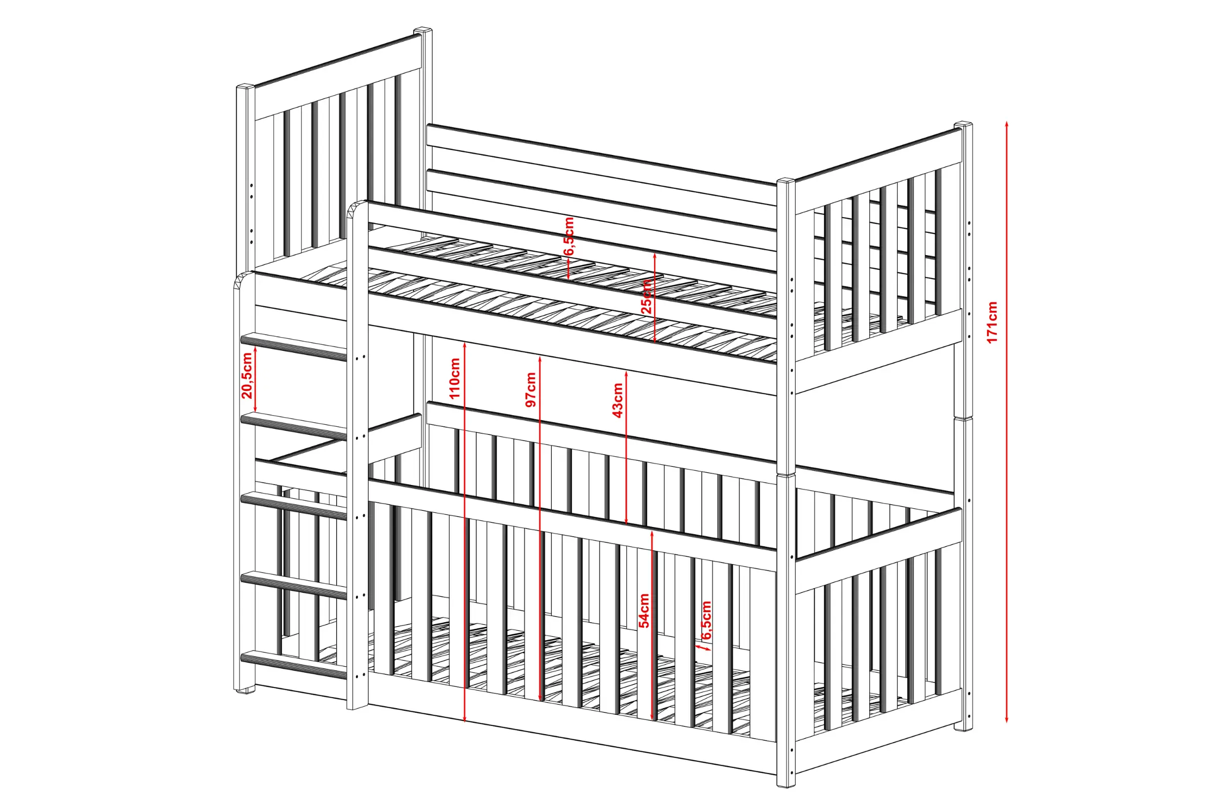 - Abstand vom Boden bis zur oberen Matratze: 97 cm