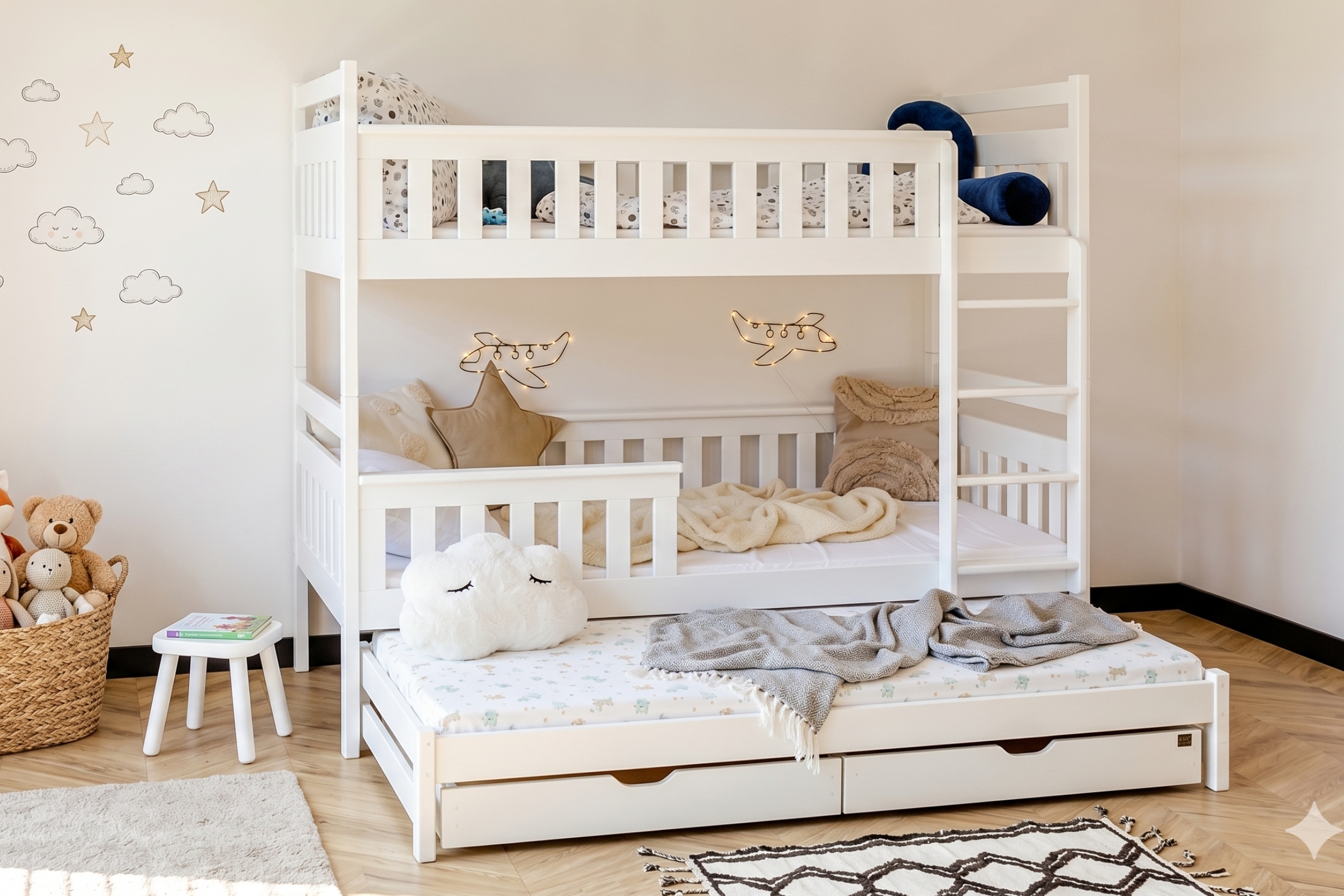 Etagenbett KEV in Weiß – Platz für 3 Kinder mit Stil, Sicherheit & Komfort